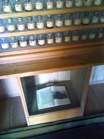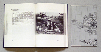 Heilrituale an Bretonischen QuellenCasti (Suisse) : Paul Gredinger, [1977].3000 ex. numérotés et signés. Exemplaire n°1373- 492 p. ; 21,5 x 15 cm. – Imprimé en offset n/b. – Reliure à la Bradel en toile bleue.- Au contre-plat inférieur, 1 carte Michelin de la Bretagne reproduite en fac-similé (format ouvert : 40,5 x 62,5 cm) est insérée dans un coin en plastique transparent.inv. n°049 05 Livre acquis sur le conseil de herman de vries. Au moment de sa parution, un exemplaire était offert en échange à quiconque envoyait son livre préféré pour constituer une bibliothèque d’ouvrages de prédilection.Voir au château d’Oiron (salon des Ondes) l’installation de Daniel Spoerri « Pharmacie bretonne » (1977) qui se compose de 117 petites bouteilles d’eau cachetées de cire et étiquetées, présentées dans une armoire vitrée, et du livre « Heilrituale an Bretonischen Quellen ». La carte est présentées encadrée à l’intérieur d’une des portes de l’armoire. (Commande publique. Inv. FNAC : 93953 – 1 à 119 et 98035.)