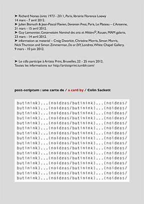 mardi 21 mars 2012 Publié le avril 10, 2013 par cdla mardi 21 mars 2012 – newscard #9 (une carte de/a card by Colin Sackett) Partager : Cliquez pour partager sur Facebook(ouvre dans une nouvelle fenêtre) Facebook J’aime chargement… Similaire
