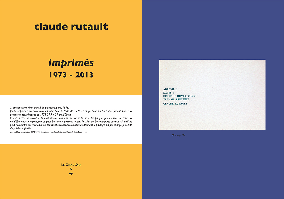 Textes de : claude rutault (41 textes publiés dans divers documents entre 1974 et 2010)