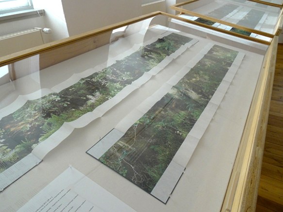 8 dépliants dans un étui en carton marron, titre et nom d’auteur imprimé en bleu.