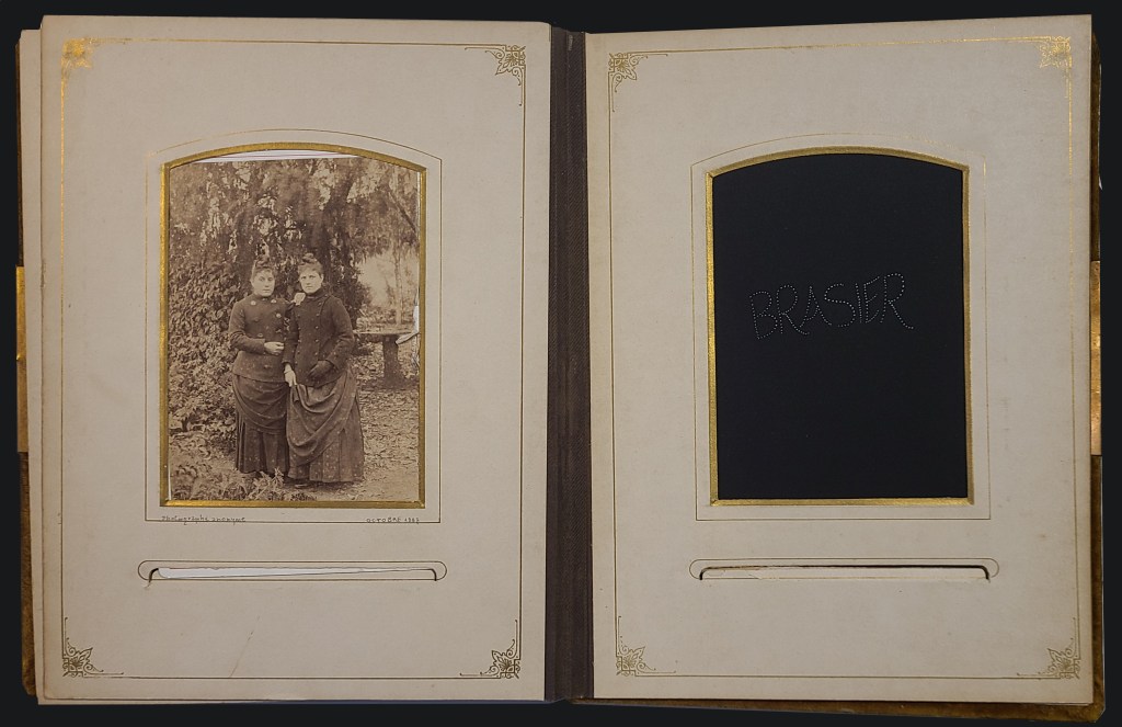 Album photo de 13 planches de carton fort ajourées de part en part (une ou quatre fenêtres par page).