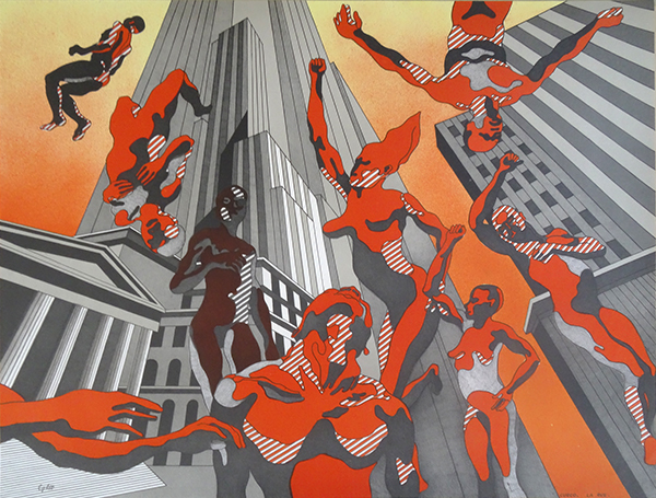 Le portfolio dit « les Hommes Rouges » contient douze estampes originales de Cueco qui ont été réalisées au cours des années 68, 69, 70 dans l’atelier de Fernand Mourlot.