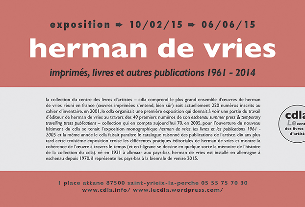 Mouans-Sartoux, Espace de l’art concret, dans le cadre de l’exposition «herman de vries. ma poésie est le monde». 36 publications de herman de vries.