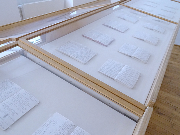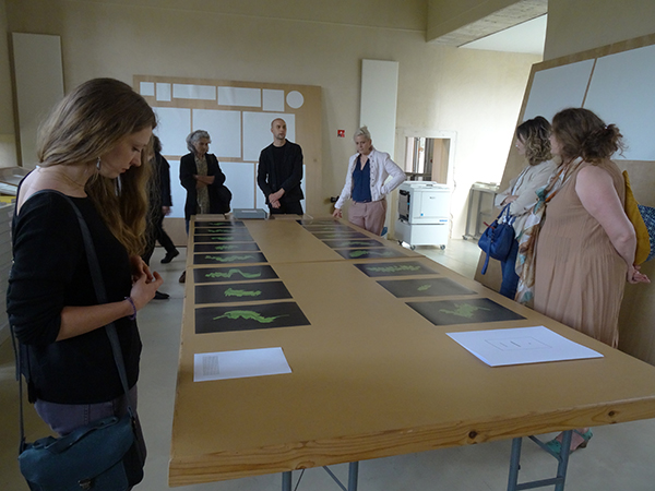 4 et 5 janvier 2024, 7 – 9 juillet et 11 – 12 juillet 2024, préparation et installation de l’exposition dont elle est la commissaire, présentée au cdla, 13 JUILLET – 26 OCTOBRE 2024. Exposition produite par le Centre des livres d’artistes suite à la résidence de l’artiste au cdla en 2023.