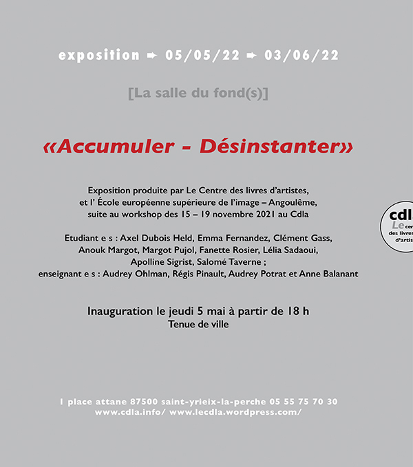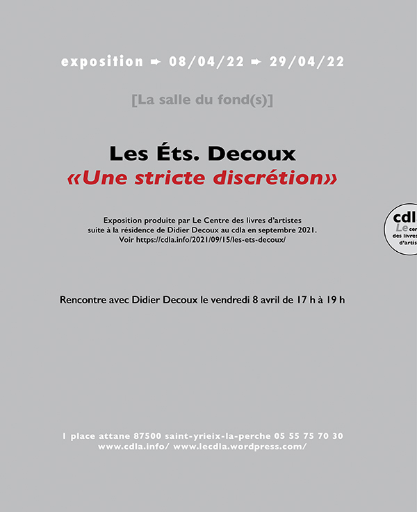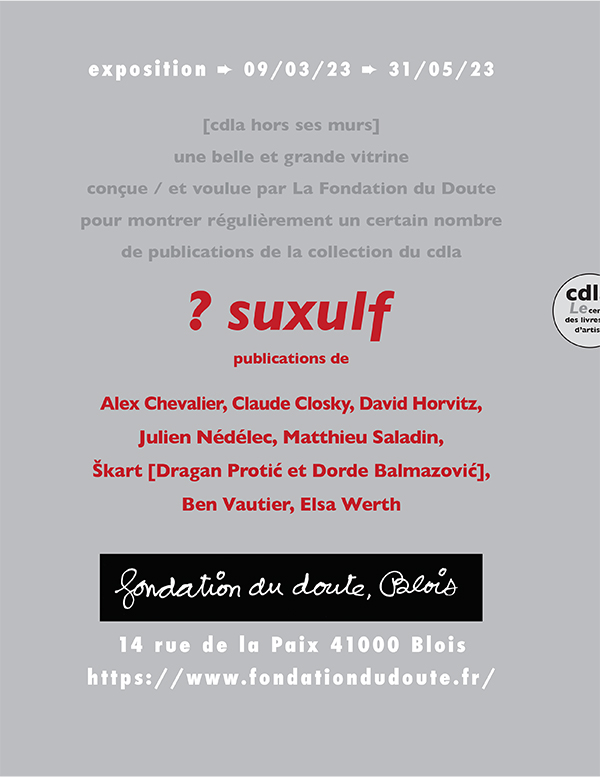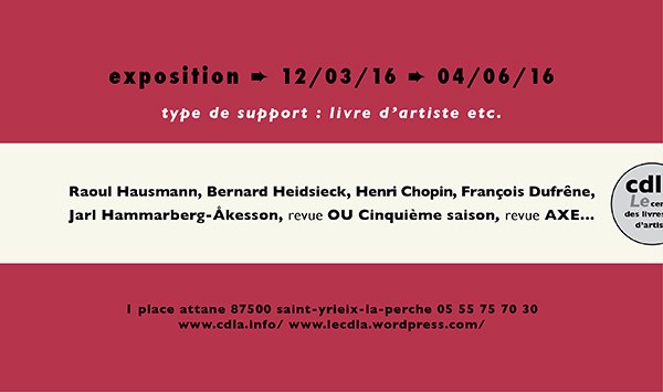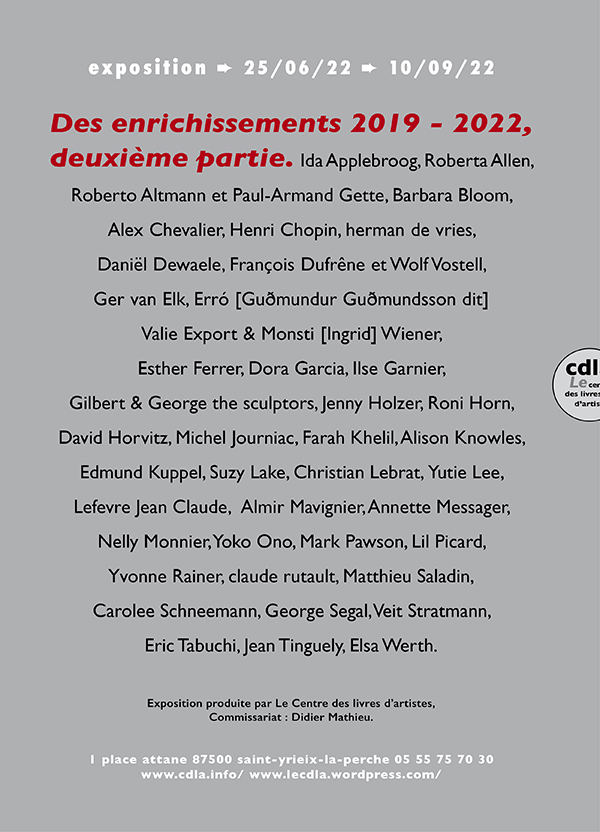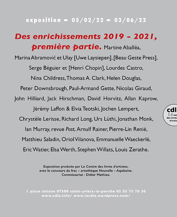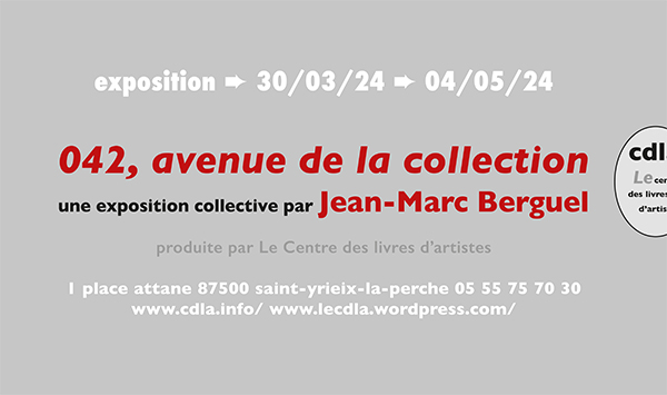 Exposition produite par le Centre des livres d’artiste, commissariat : Jean-Marc Berguel.