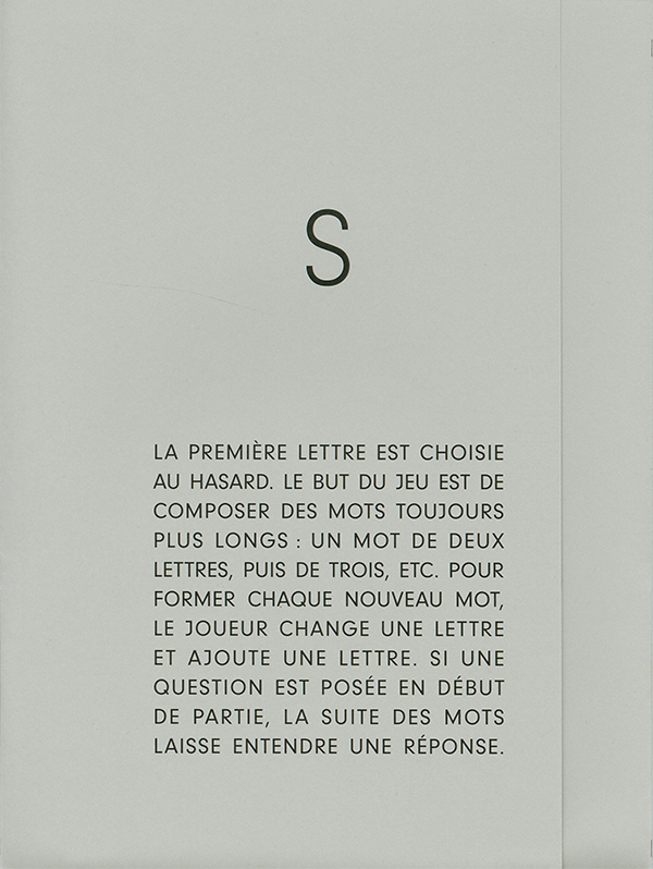 – 1 carte ; 15 x 10 cm, imprimée en n/b au recto et noir au verso, sur carton blanc. Saint-Yrieix-la-Perche : Le Centre des livres d’artistes, 2024. 100 ex.