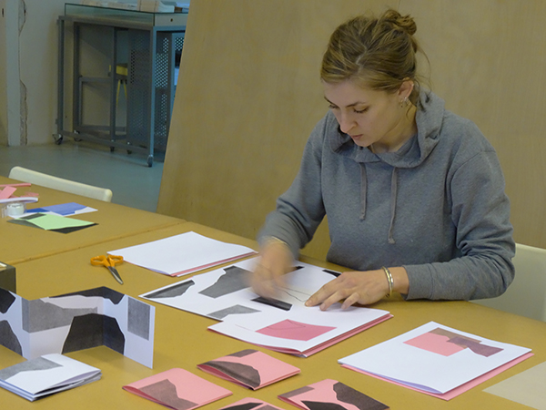 4 et 5 janvier 2024, préparation de l’exposition dont elle est la commissaire présentée début 2024 au cdla. Exposition produite par le Centre des livres d’artistes suite à la résidence de l’artiste au cdla en 2022.