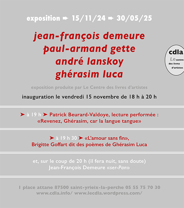 Le 15 novembre au moment de l’inauguration de l’exposition jean-françois demeure, paul-armand gette, andré lanskoy, ghérasim luca (15 novembre 2024 / 30 mai 2025).