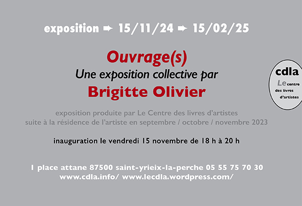 «La Salle du fond[s]» – Ouvrages une exposition collective de Brigitte Olivier Exposition produite par le Centre des livres d’artistes suite à sa résidence en 2023.