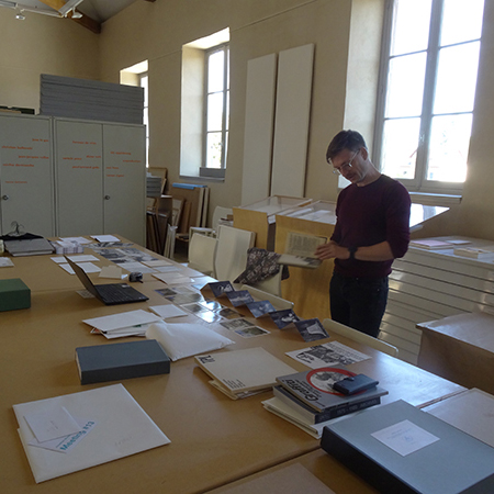 Dans le cadre de ma résidence au CDLA, je souhaite explorer le fonds du centre en suivant trois orientations qui pourront éventuellement se croiser : la révolte, le travail et l’économie. Ces trois directions de recherche font directement écho à des problématiques qui se trouvent au cœur de mon travail artistique : les soulèvements individuels et collectifs considérés au croisement du refus d’un ordre existant prétendu immuable et de leur logique émancipatrice ; l’entremêlement des rapports à l’individuation et à l’aliénation à l’œuvre dans le travail et la part idéologique des discours qui entourent ses définitions ; le rôle et l’enrôlement de l’économie dans les processus de subjectivation et les projets de société. Il s’agira ici d’ausculter le fonds pour dégager différentes constellations de publications d’artistes susceptibles de résonner avec ces axes de recherche. Ce travail donnera lieu à un projet artistique et curatorial dont la forme et les modalités se dessineront au cours de la recherche.
