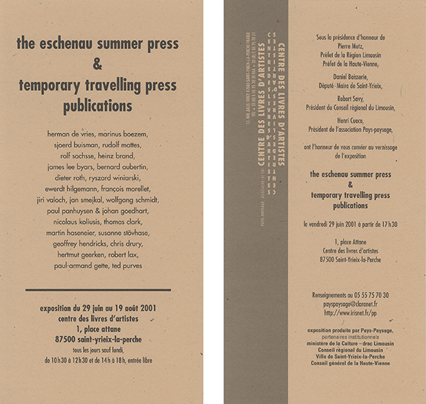 the eschenau summer press & temporary travelling press publications
