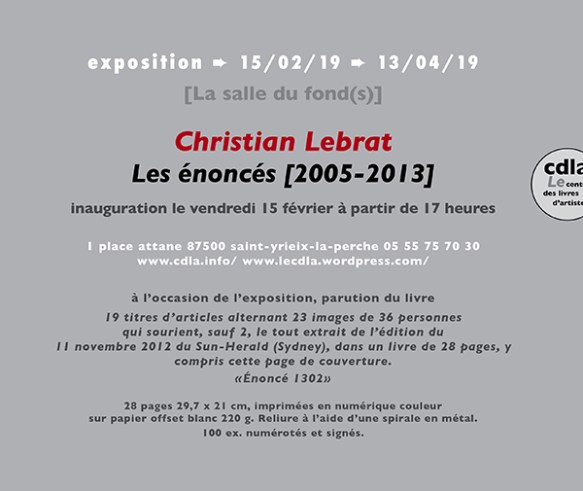 «La Salle du fond[s]» – Christian Lebrat, Les énoncés [2005-2013]