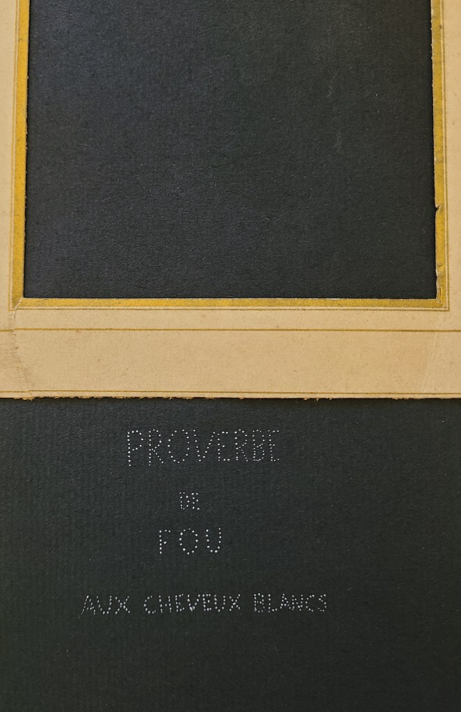 «LE MORT EN COLÈRE // IL PRIT SES POMPES FUNÈBRES POUR UN TRANSPORT / AU CERVEAU /// INHUMÉ À BOUT DE SOUFFLE /// EXHUMÉ À SOUFFLE COUPÉ /// IVRE-MORT AU FOND DE LA BIÈRE /// SON BILLET DE FAIRE-PART FULMINE DERRIÈRE LE SUAIRE / SON EXTRAIT MORTUAIRE EXASPÈRE LE CATAPHALQUE /// SANS FLEURS /// NI COURONNE /// À CHAQUE CROQUE MORT, SON DERVICHE TOURNEUR /// VEILLER LE MORT HORS DE SOI /// L’EXPOSITION DU CORPS HORS DE SOI ,,EMBAUME‘‘ LE MORT /// NE PLUS SE RECONNAÎTRE À SES PROPRES OBSÈQUES : / ASCÈSE D’OBSÉDÉ SEC /// L’ACCÈS DES MORTS AUX RESTES MORTELS /// CI-GÎT UN CHAR FUNÈBRE /// ICI REPOSE LE CORBILLARD /// MÉDECIN DES MORTS, BACCHANTE /// DÈS LA LEVÉE DU CORPS, ET COMME PRIS D’UNE SORTE DE RAGE / AU CORPS DISPARU, L’,,EMPORTEMENT‘‘ DU CADAVRE PORTE / EN TERRE LE CORTÈGE»