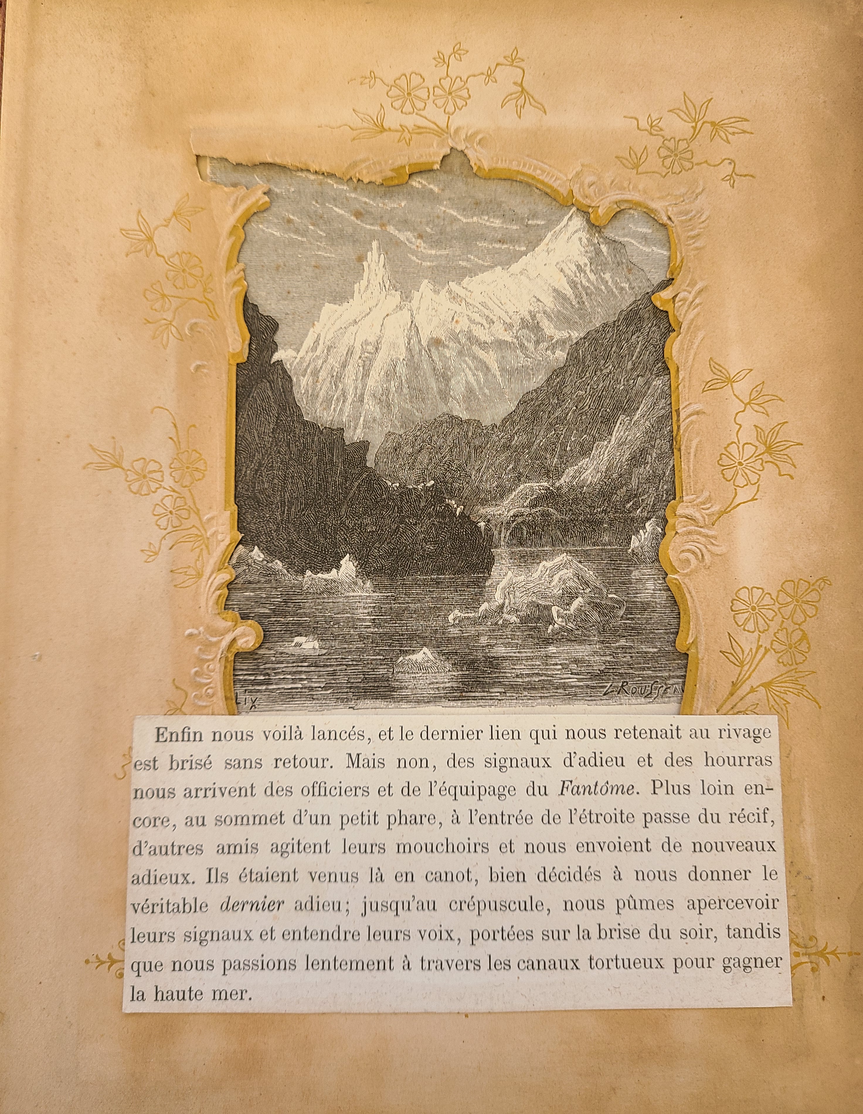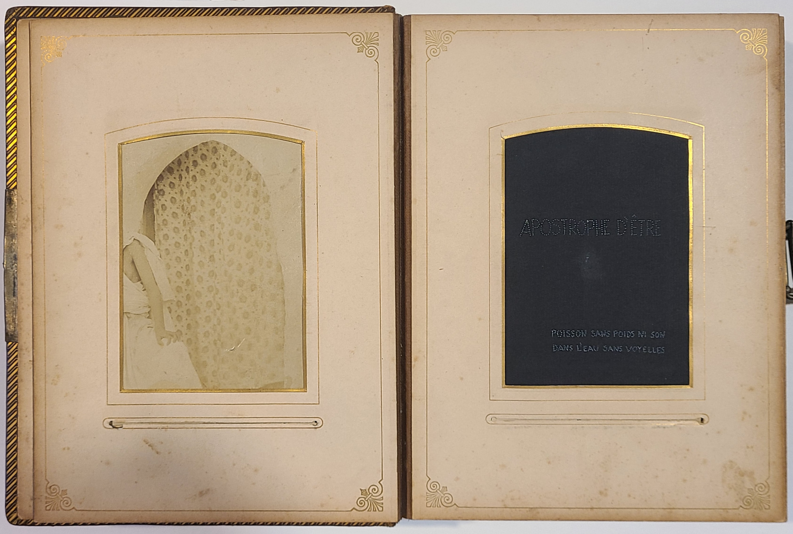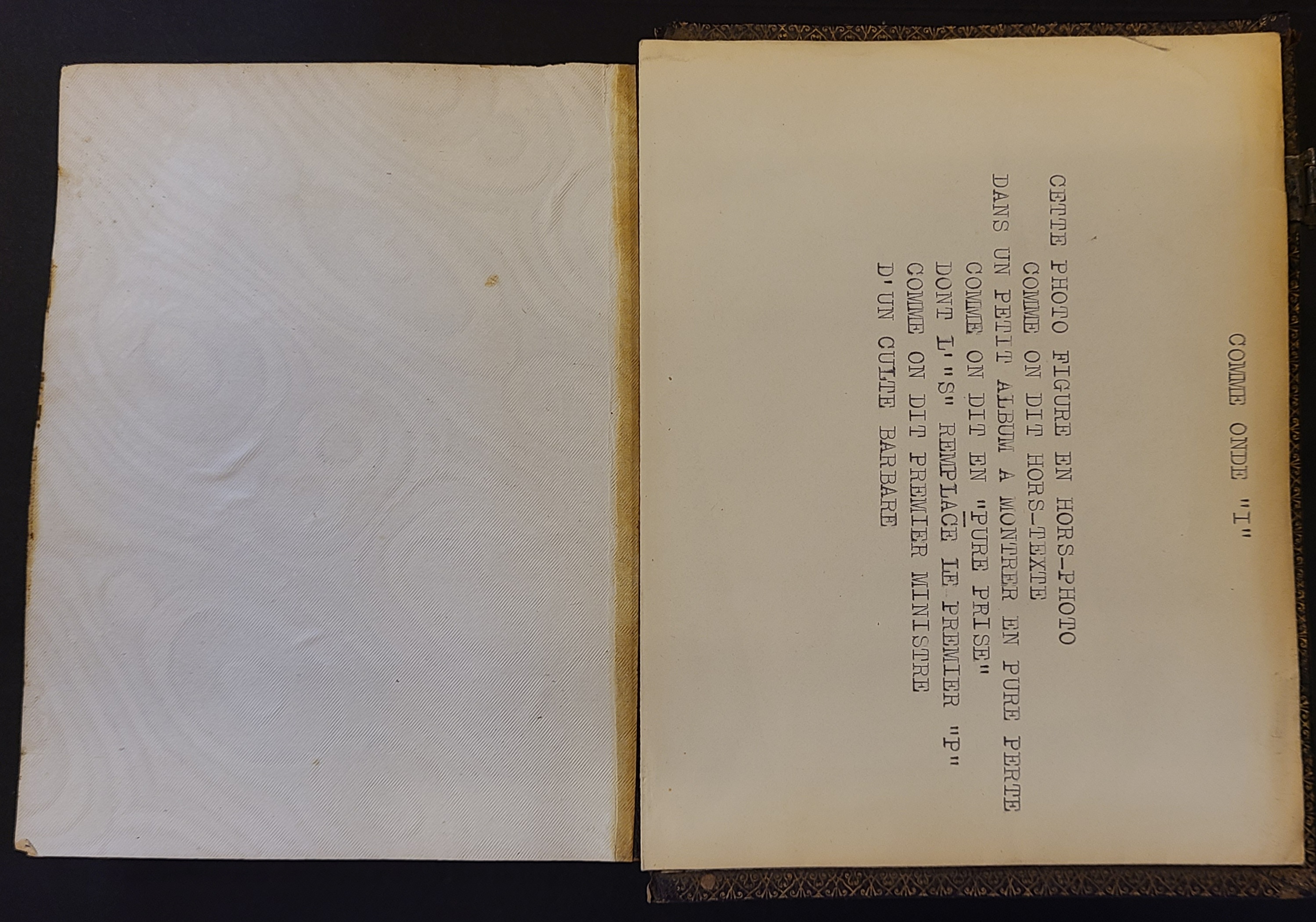 Certaines photographies sont d’un format trop petit pour les ajours dans lesquelles elles sont glissées, elles sont alors glissées dans le coin inférieur droit, sans y être collées.