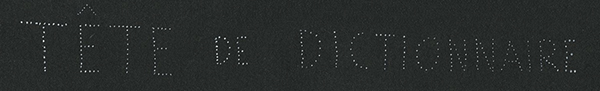 «LE MORT EN COLÈRE // IL PRIT SES POMPES FUNÈBRES POUR UN TRANSPORT / AU CERVEAU /// INHUMÉ À BOUT DE SOUFFLE /// EXHUMÉ À SOUFFLE COUPÉ /// IVRE-MORT AU FOND DE LA BIÈRE /// SON BILLET DE FAIRE-PART FULMINE DERRIÈRE LE SUAIRE / SON EXTRAIT MORTUAIRE EXASPÈRE LE CATAPHALQUE /// SANS FLEURS /// NI COURONNE /// À CHAQUE CROQUE MORT, SON DERVICHE TOURNEUR /// VEILLER LE MORT HORS DE SOI /// L’EXPOSITION DU CORPS HORS DE SOI ,,EMBAUME‘‘ LE MORT /// NE PLUS SE RECONNAÎTRE À SES PROPRES OBSÈQUES : / ASCÈSE D’OBSÉDÉ SEC /// L’ACCÈS DES MORTS AUX RESTES MORTELS /// CI-GÎT UN CHAR FUNÈBRE /// ICI REPOSE LE CORBILLARD /// MÉDECIN DES MORTS, BACCHANTE /// DÈS LA LEVÉE DU CORPS, ET COMME PRIS D’UNE SORTE DE RAGE / AU CORPS DISPARU, L’,,EMPORTEMENT‘‘ DU CADAVRE PORTE / EN TERRE LE CORTÈGE»