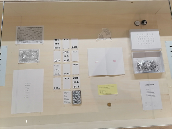 de livres d’artiste du cdla et la collection de cartes postales d’Oriol Vilanova. D’une familiarité domestique, se mélangent contenant et contenu jusqu’à la presque invisibilité de l’intervention.