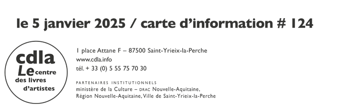 Exposition concoctée par Brigitte Olivier en lien avec la collection du Centre des Livres d’Artistes, travail faisant suite à une résidence effectuée en 2023.