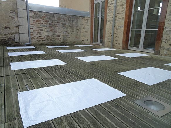 physiquement à partir de bâches tressées blanches. Ou plutôt, supposées blanches.