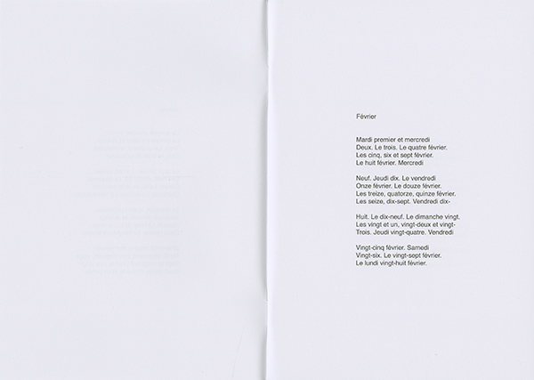 Dans sa forme, l’ouvrage évoque le dispositif d’exposition conçu par l’artiste et il en est exactement le catalogue. La typographie utilise une police créée pour l’occasion par Claude Closky : Kalavryta (du nom d’une station de ski grecque).