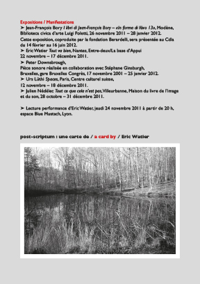 Carl Andre, Jacques André, George Brecht et Robert Filliou, Daniel Buren, Daniel Spoerri Simon Starling, Harald Szeemann, claude rutault, Eric Watier, herman de vries,
