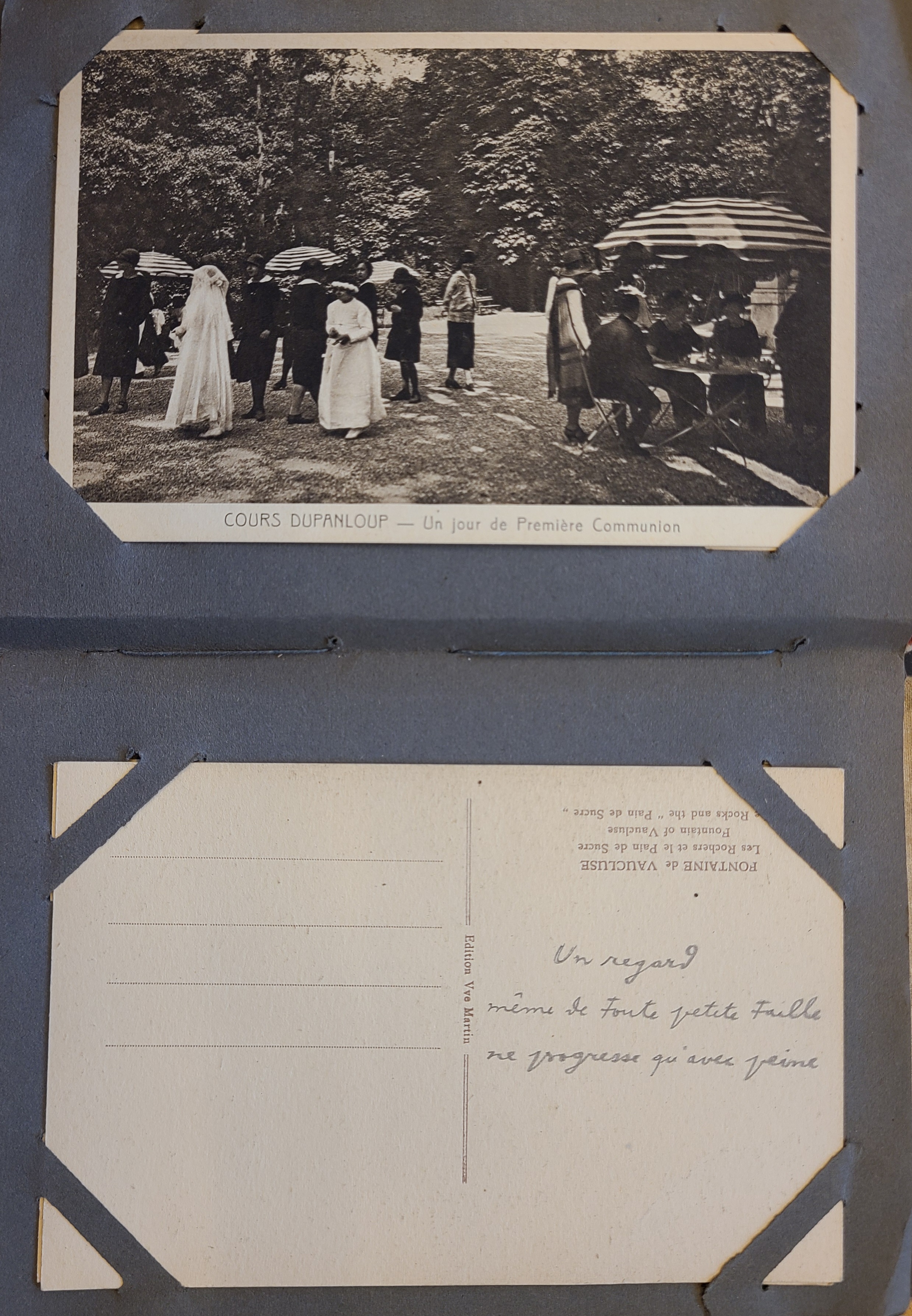59 cartes postales des années 1910-1920 réunies en séries suivies (Cours Dupanloup, Message Maritime, Ecole des Arts et Métiers, portraits ethniques).