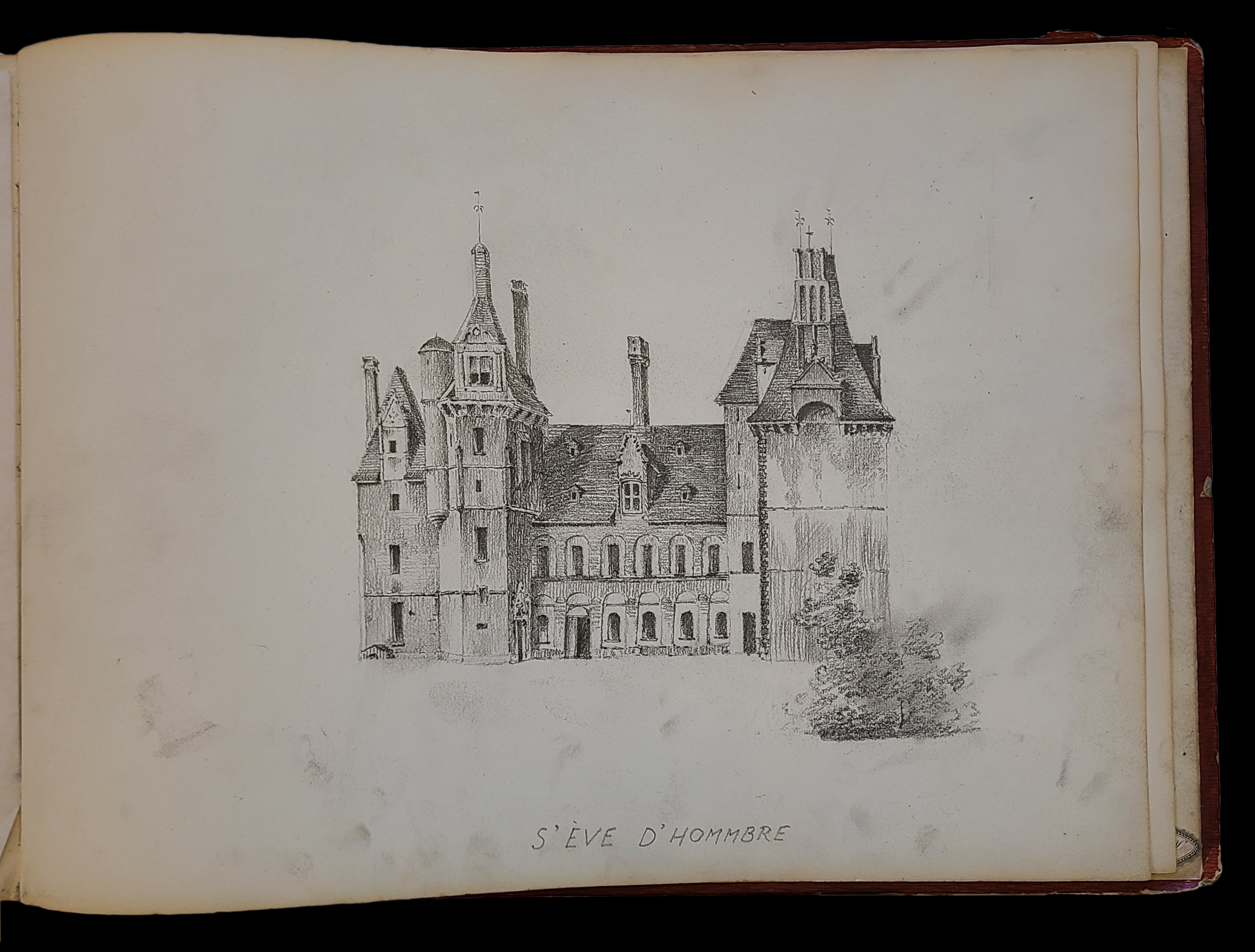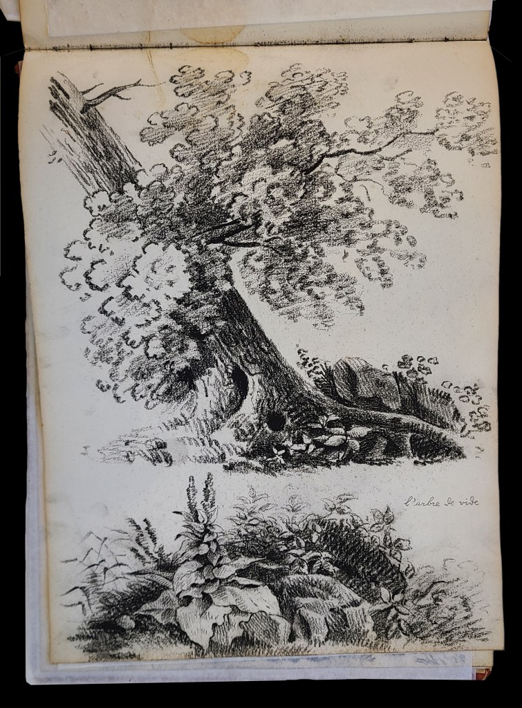 Croquis et études sur chaque belle page, à la mine de graphite, au fusain ou à la peinture à l’huile ; signature au premier contreplat «E. A. Prevost» présenté comme «jardinier-fleuriste» (p. 2), à la mine de graphite.