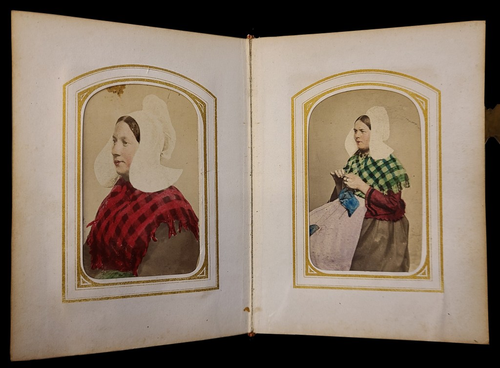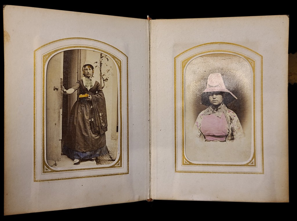 38 photographies fin XIXe siècle, format carte de visite , différents portraits (hommes, femmes, bustes, plain-pied) ; nombreuses photographies coloriées à grands traits.
