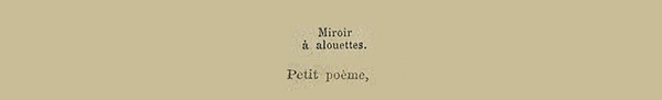 (la numérotation entre crochets correspond aux seules mentions autographes, à la mine de graphite) «Miroir à alouettes // Petit poème, / If. / If. /// Manière de tracer un cœur au moyen de deux triangles équilatéraux. /// Spirale à quatre centres. triangle équilatéral ; à quatre […] tués aux quatre sommets des […] // Tritons. /// Triton. // vaut une triple croche /// Triangle. // Sphinx. /// Soupir. /// Prométhée. /// Oedipe et le Sphinx. /// Tribart. / Trident // Vis-à-vis. /// Orphie. /// Orphée. // homme et / Minotaure // qui naquit de / Vénus. /// fut noyé par / Neptune. // qui naquit de / Vénus. /// Viole d’amour. /// Spirale à quatre centres. /// Neptune. // Minotaure.. /// Licorne. // Centaure. /// Noeud d’anguille. // Cadenas. // Profil. // Clef. /// Noeud d’anguille. // Clef. // Profil. // Cadenas. /// Coccinelle. // Vestale. /// Glace à la main. // Atlas. /// Isis. // Seconde. /// Pan. // Pan. /// Horus. /// Saturne. /// Notes carrées. /// Carré. // Cercle. // Cercle. // Carré. /// lat. spirare, respirer, et / Spirorbe. / communément aigles. /// Prométhée. /// Aigle et aiglons. /// Sources minérales / Griffon. // Les ailes de l’aigle / Dragon. // Rhododendron. /// Bombardon / Baryton. / Tympanon. / Hélicon. / Clairon. / Tétrodon. / Tetrodon. Gros marteau pour abattre /// Les sept (cartes). /// Trille. /// Flûte de Pan. // Crible. // Tambour. /// Hibou. // Effraie. // Hibou. /// Planche. // Dé à coudre. // Coupe. // Dé à jouer. /// Cithare. // Grille. // Cithare. /// Solitaire (jeu). // Effraie. // Solitaire (jeu). /// Osiris. // Osiris // Cymbales. /// Cymbales. // Anubis. // Anubis. /// Ophicléide. // Momie. // Aimant. // Oedipe et le Sphinx. // Jumelles. /// [4] Cornes d’appel. // [3] Cor de chasse. // [2] Aimant. // [1] Néo-cor. /// Trompette d’harmonie. // Vive. // Coiffe. // Trompette de cavalerie. // Carnassière. // Flûte. // Régulière. // Flûte. // Irrégulière. /// Serpentaire. // Trigonocéphale. /// Torche. /// Bacchus. /// Faquir. // Tapir. // Menhir. /// Ecran. // Tatouage. // Tam-tam. /// Nage indienne. /// Pilote. /// le quart de soupir // vaut une ronde /// Ocarina. // Trimourti. // Octogone. // Saxophone. // latéral (roulé par dessus) /// le demi soupir // vaut une double croche /// Anneaux // Anneaux // Fifre. // projeté droit // Confucius. morale, d’un idéal // en avant en arrière /// Anneau. // Auréole. // Nimbe. /// Auréole. // Nimbe. // Anneau. /// le huitième de soupir // vaut une blanche /// de face en hauteur // Brahma. // Mât fixe // Clarinette. /// le seizième de soupir // vaut une noire /// en avant en arrière // Bouddha. // Mur d’assaut // Clarinette. // Grattoir. /// Cible. /// Ventouse. /// Demi-soupir. /// Syncopes. /// Silences. /// [signature :] ghérasim luca»