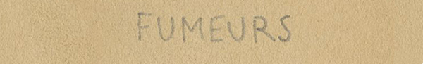 Cas unique dans ce fonds, cet album peut s’observer en parallèle de son double, l’album FUMEURS ! – et ainsi révéler les points saillants d’un projet esthétique : la mise en scène des traits de folklore, la vieille veuve, les images colorisées. Mais, du premier au second, le projet semble se clarifier, à la fois par l’ironie politique qui se distille dans FUMEURS ! et l’espacement du texte dans un album plus long.