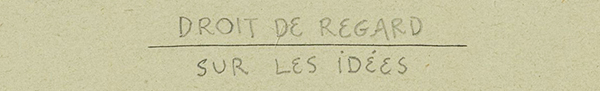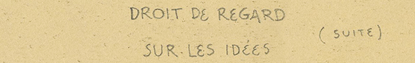 Le texte de l’album est le même que celui de la première publication du «Droit de regard sur les idées», chez Brunidor en 1967, puis des Paralipomènes (éd. Le Soleil Noir, 1976), p. 9. Il est scindé en deux volumes dans les albums. Quelques variantes sont à noter.