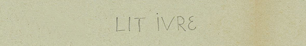 Mot pour mot (sauf éventuelle coquille, «mémoré») le même texte que «LIT IVRE», Paralipomènes (éd. Le Soleil Noir, 1976), p. 41, dont la transcription suit : «lit muable n’est point sujet à changer / lit mortel n’est point sujet à la mort / lit limité n’est ne peut être limité / et de lit mémoré / on a pas conservé la mémoire // boisson acide, substance simple : lit-monade /// commun dans le marais : lit-vie / tirant sur le noir, lit-vide // lit légal contraire à la loi / lit moral contraire à la morale // lit réel n’est pas réel / lit réalisable n’est pas réalisable // lit-monde sale et impur / lit vrai cause de grands ravages // points / de / lit-tige / lit-dé et lit-mage // lit respirable lit responsable lit mobile // lit-lit mi-table / lit sans cieux»