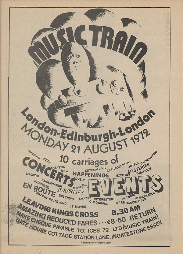 1 annonce pleine page (42 x 29,7 cm) pour le «International Carnival of Experimental Sound» en page 14. En page 15, 1 annonce pour le «Music Train» Londres-Edingurgh-Londres du 21 août dans le cadre du festival Ices.