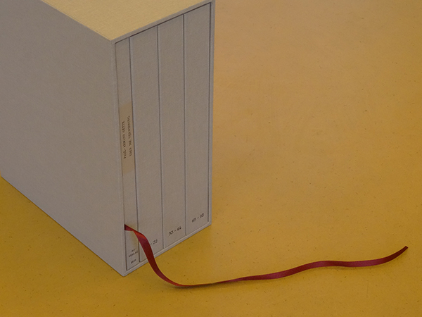 – Dans un portfolio en carton ondulé brun ; 68 x 52 x 1 cm.