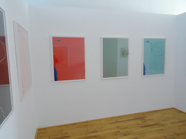 en couleurs sur papier blanc. Les hommes rouges 1, Les hommes rouges 2, La rue, Manifestation 1, Manifestation 2, Nuées, La grève, La meute, L’université. Les deux planches ajoutées sont titrées L’usinage des roses, Freud Marx Mao.