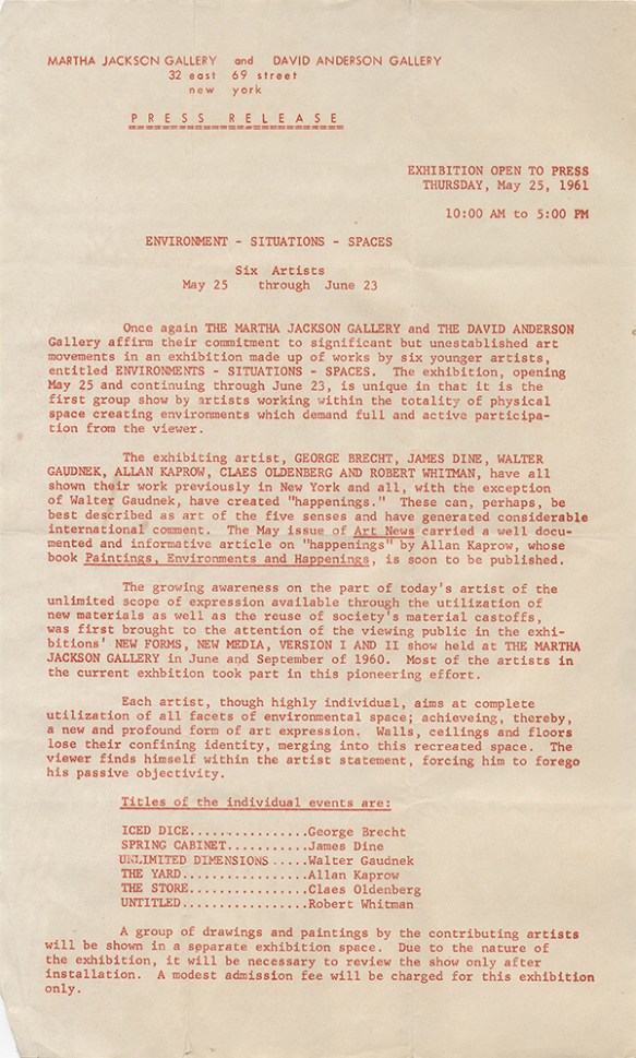 Communiqué de presse de l’exposition éponyme, 25 mai – 23 juin 1961.